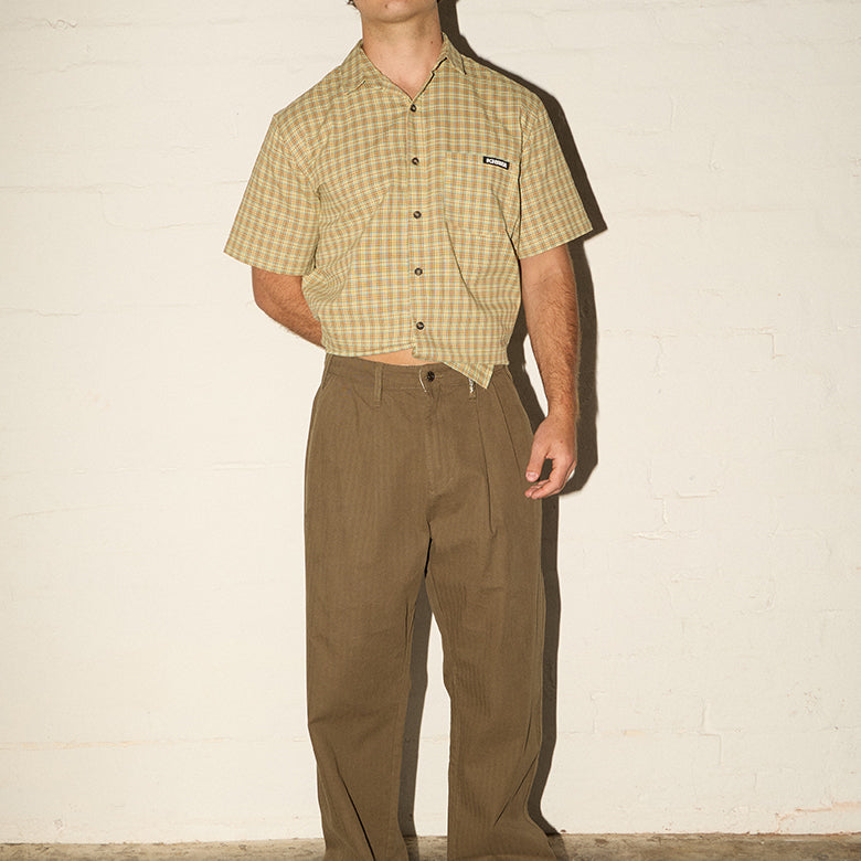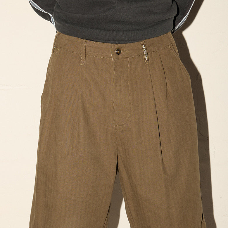 Pleated Herringbone Pants - Martini Olive