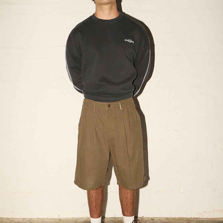 Pleated Herringbone Shorts - Martini Olive