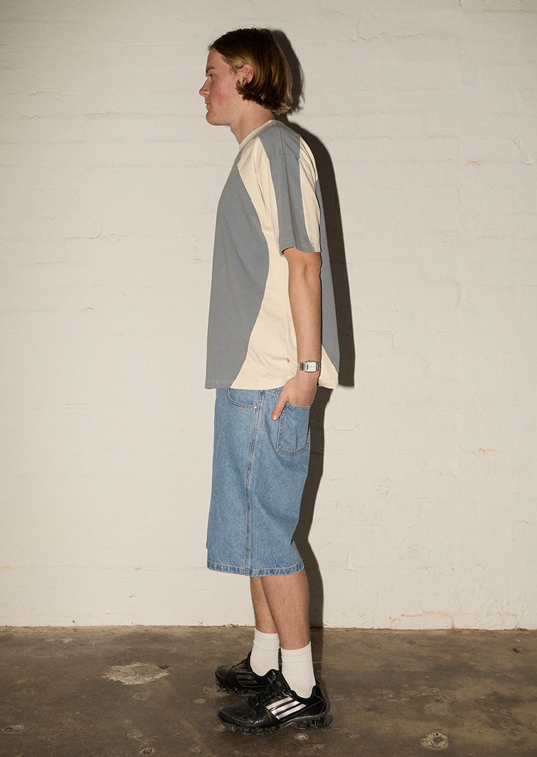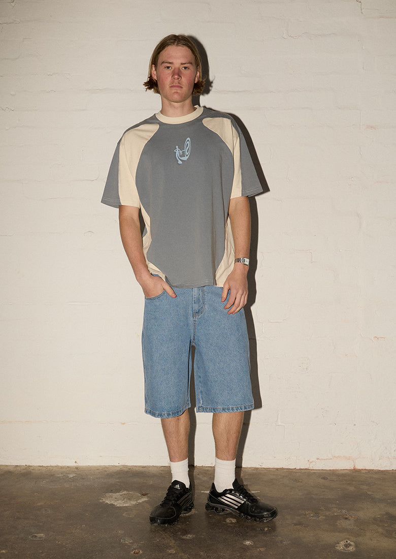 Experience bold comfort with the Capital Tee in Panther Black and Gunpowder. Crafted from soft cotton, its boxy fit offers an effortlessly relaxed silhouette. Vintage contrast paneling adds an edgy twist, making this tee a fearless statement in your everyday wardrobe. Perfect for festival season or drinks with mates, pair it with our Really Big Pants and make a statement!