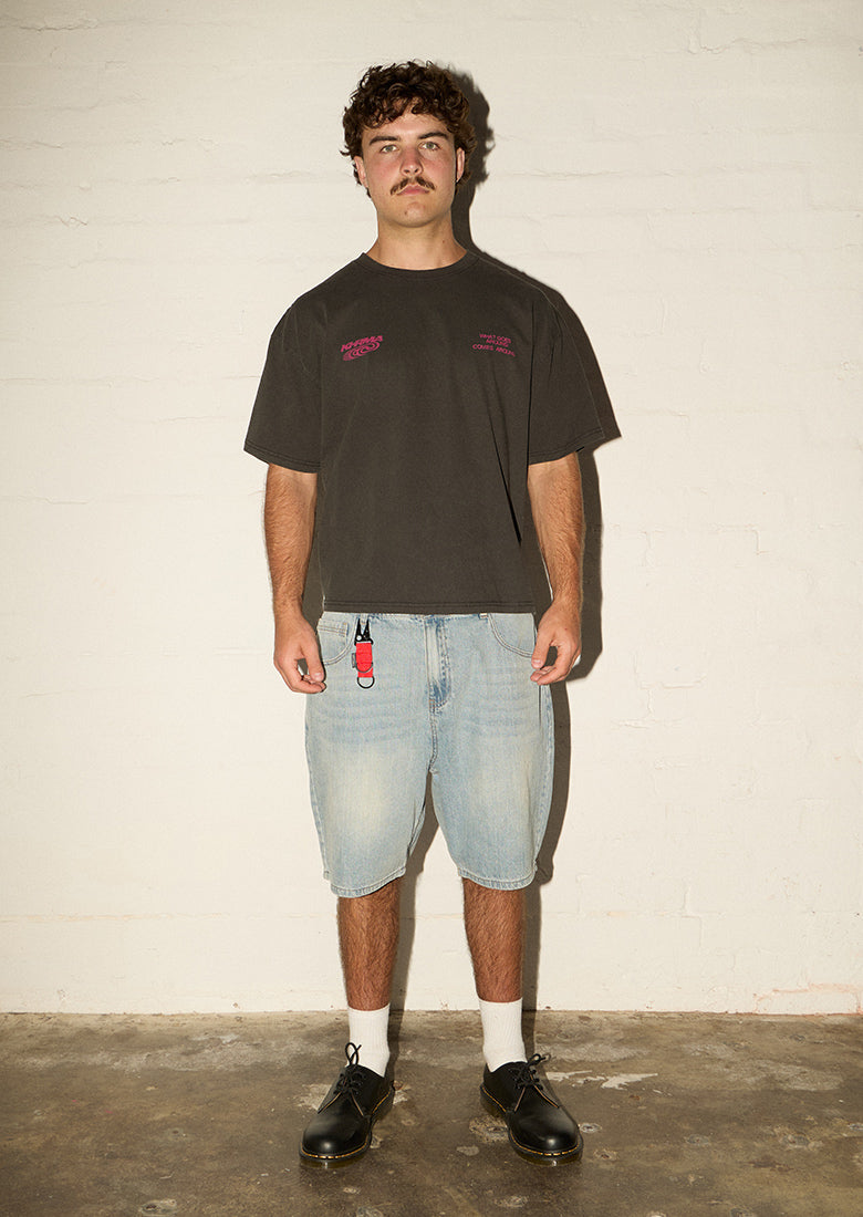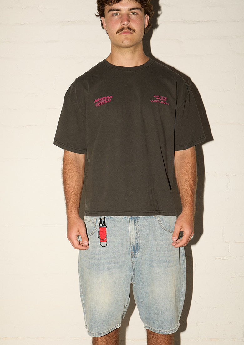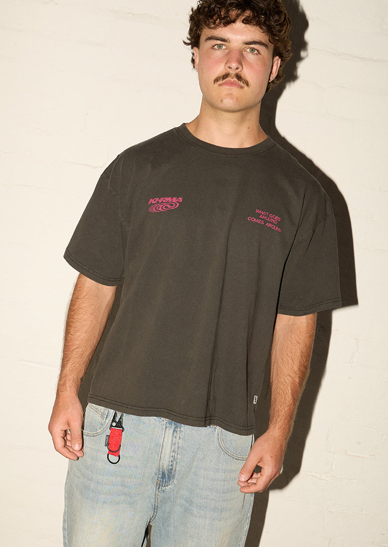 Unleash your rebellious side with the Chopped No Mercy Tee in Racer Swirl. This edgy Racer Tee design screams attitude while keeping you comfortable during adrenaline fueled day trips. Join the Khrma Racing Team! It's not just a tee it's a statement that you live life in the fast lane.