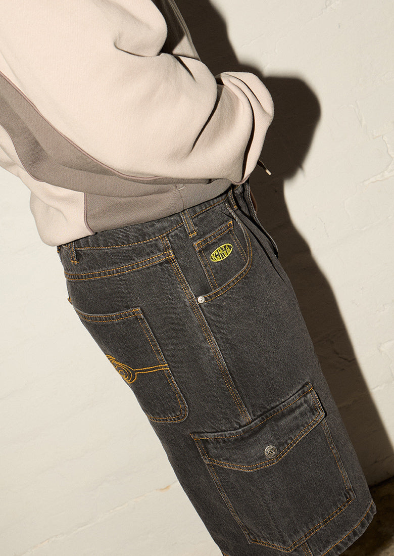 Baggy cargos are here to stay with the Duffy Shorts. Duffy shorts feature contrast stitching and statement pockets ticking off this seasons jorts trend!
