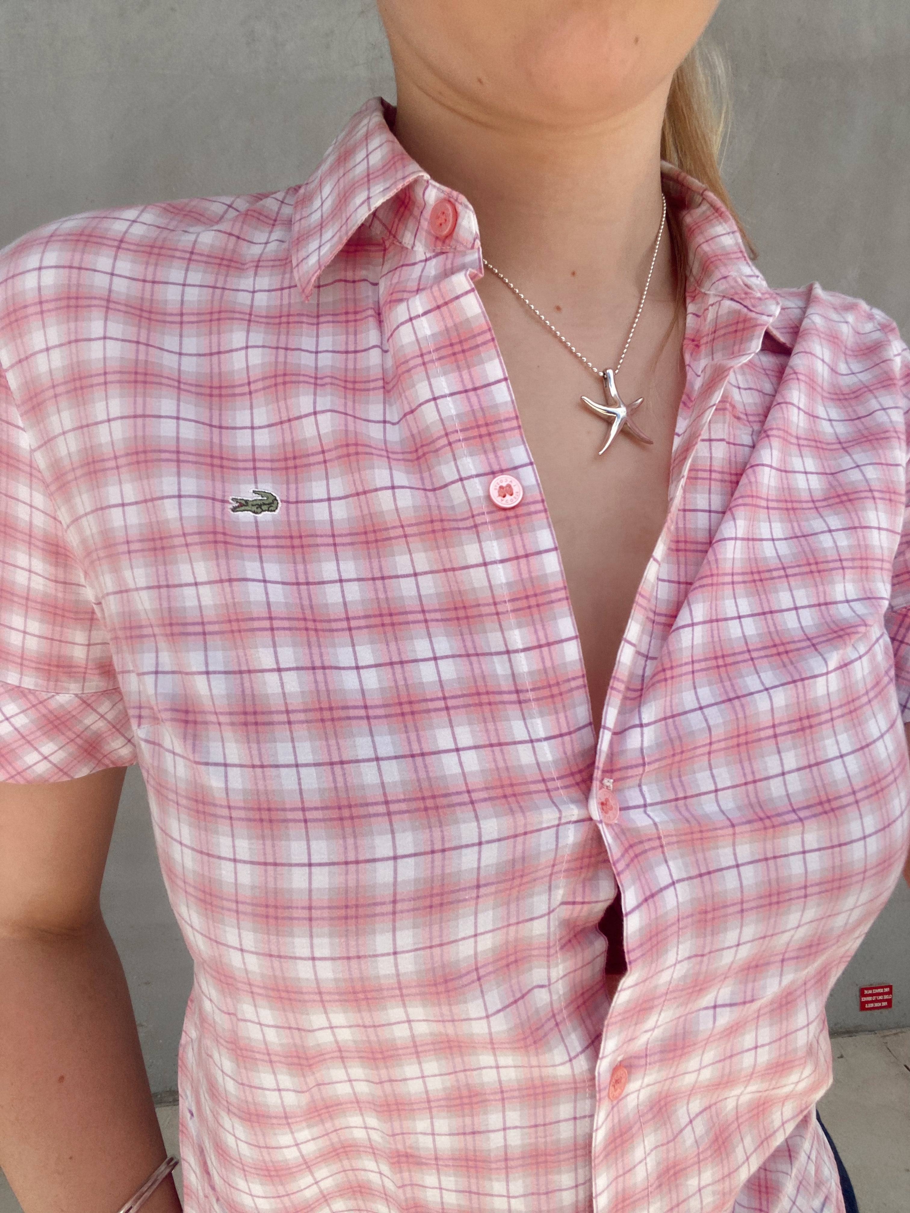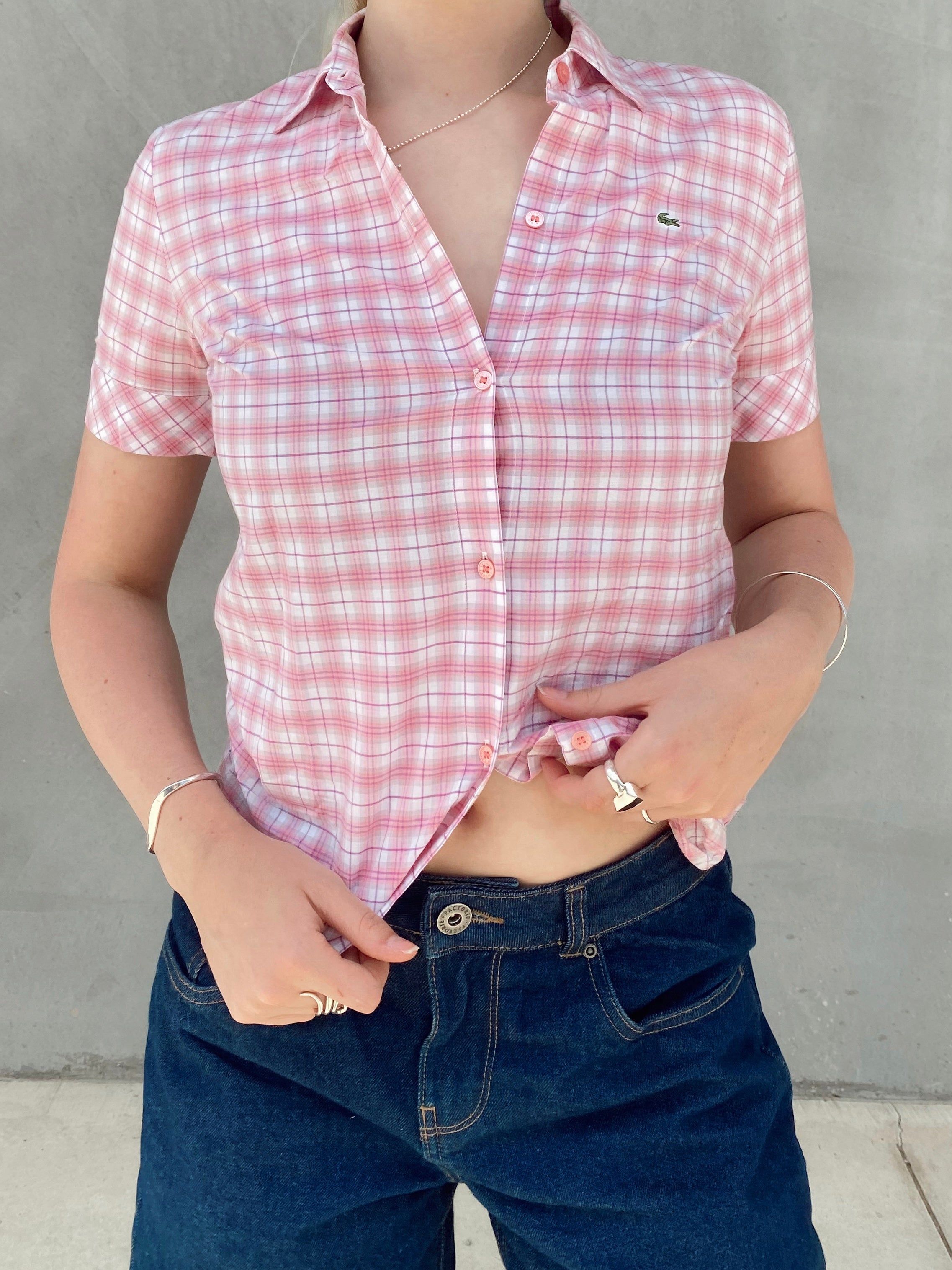 Vintage Lacoste Button Up Shirt, Perfect To Wear To Your Next Day Out with the girls, paired with a denim mini skirt.