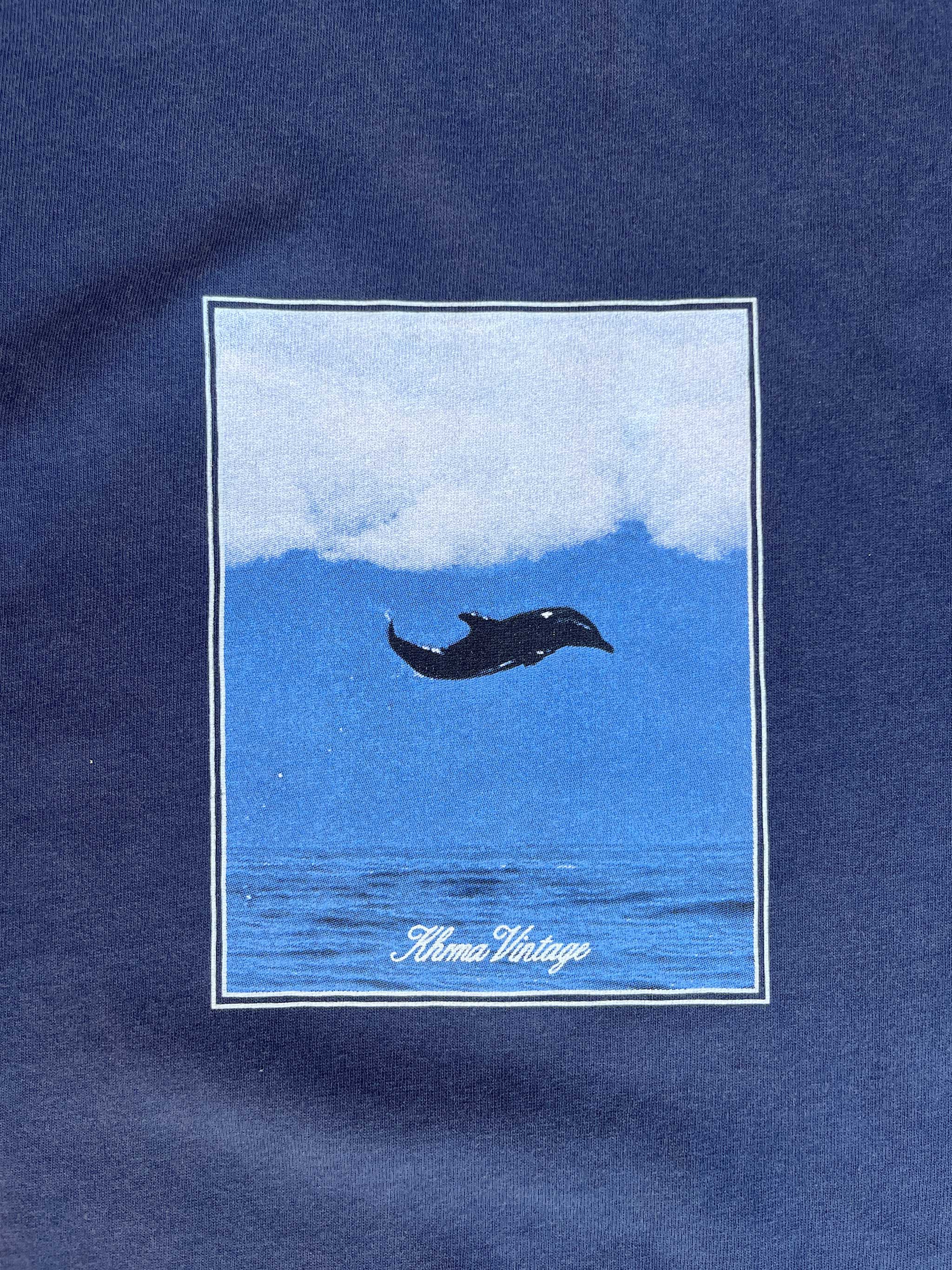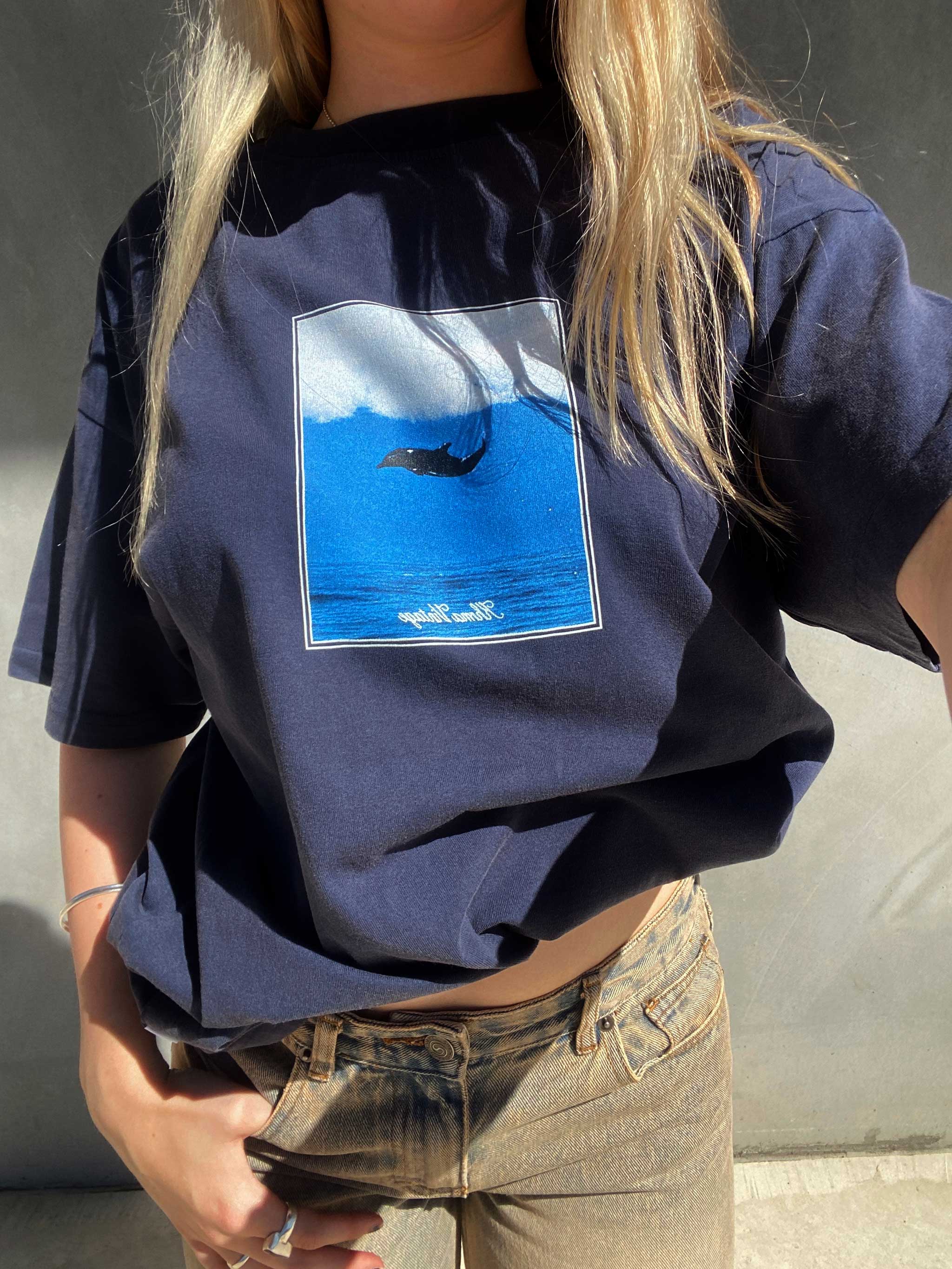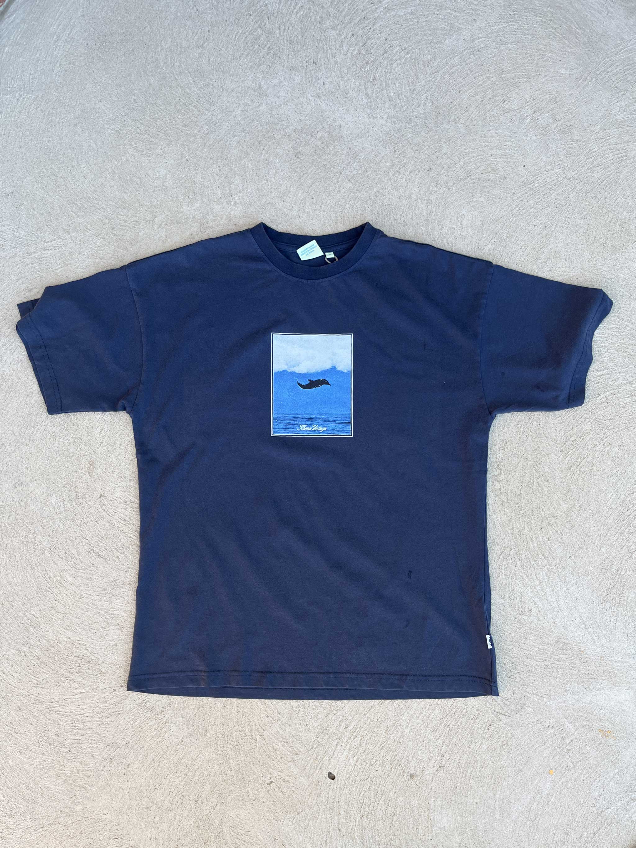 Hit the beach in style with our Maui Tee in Vintage Navy! Featuring a vintage image jumping dolphin screen print, this tee is perfect for catching up with mates on the weekends.