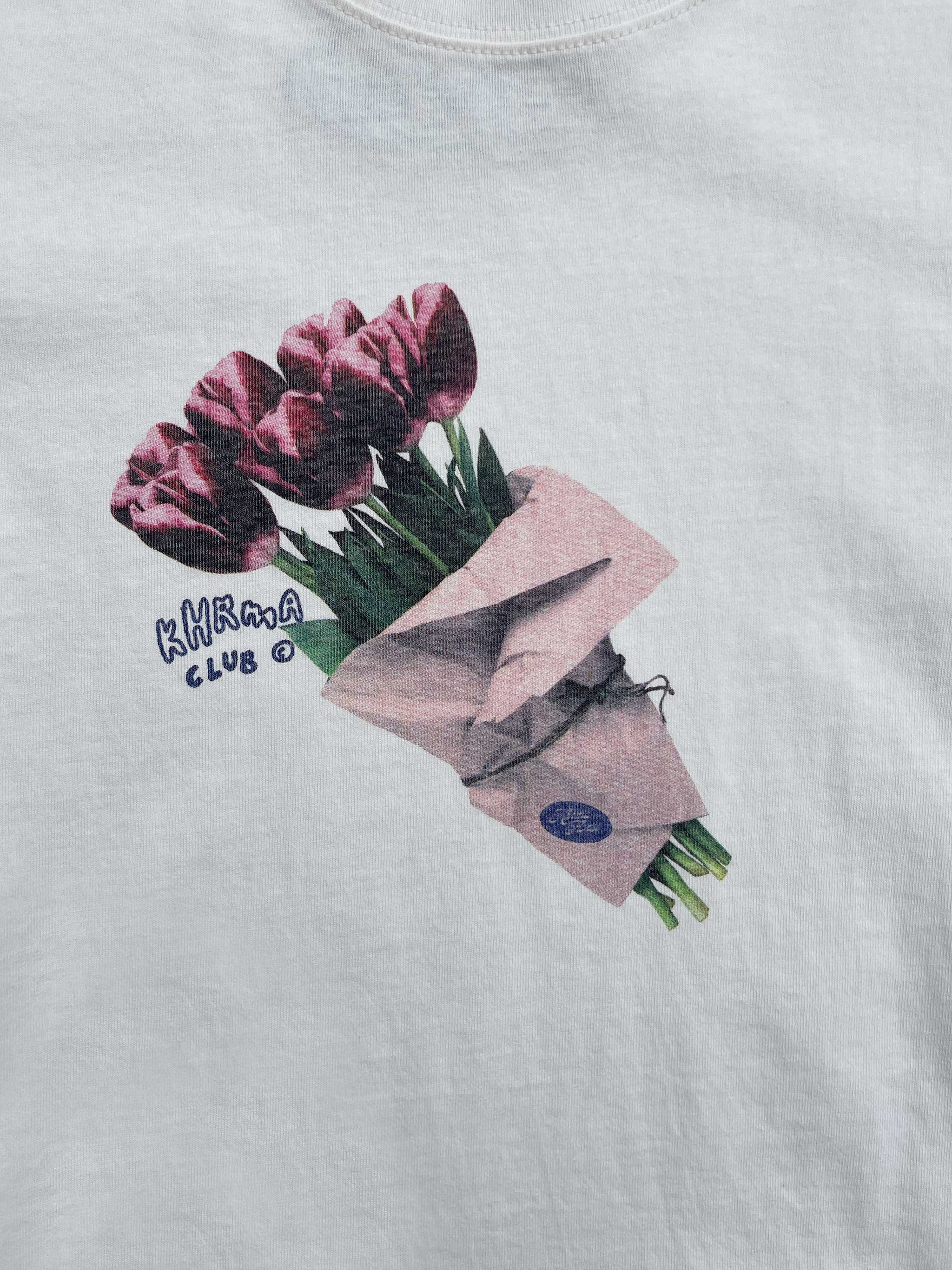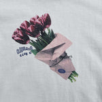 This Offshore Tee in off white breathable jersey cotton features a vintage pop art vibe of a Moody Flower Bouquet print on the front.