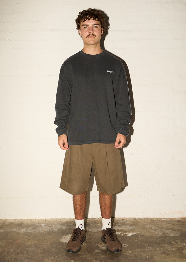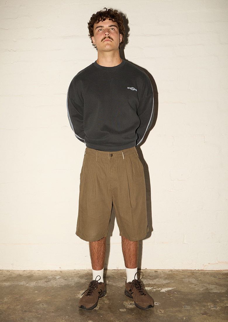 Embrace effortless edge with these Herringbone pleated shorts. Relaxed fit in a herringbone drill thread and discrete pleating create an undeniably cool silhouette, while functional side pockets keep you practical. Button closure on back pockets. Perfect for those who refuse to blend in.
