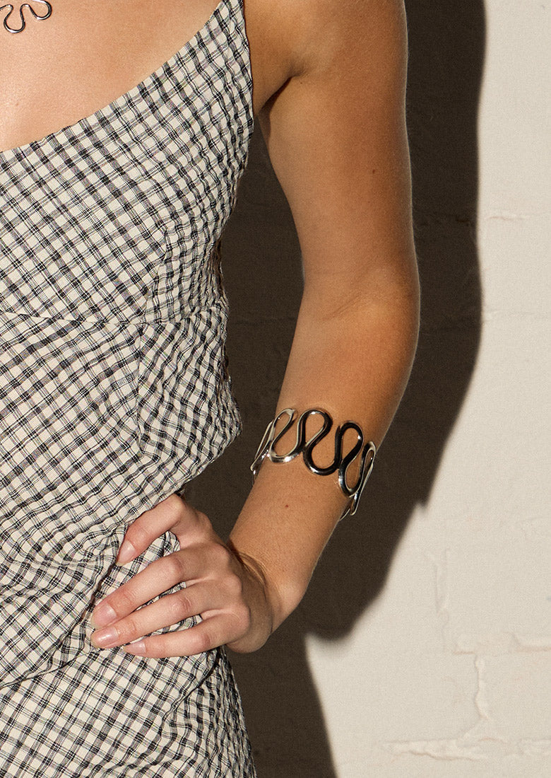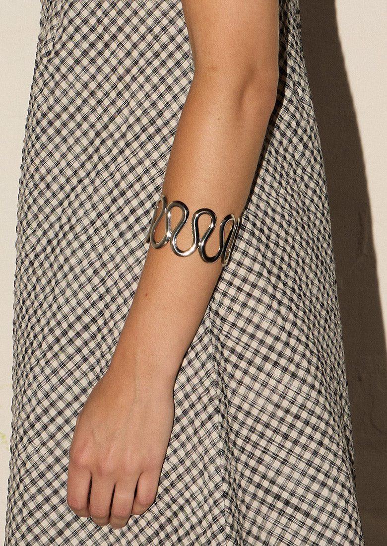 Less is more with the Slate Bracelet, a sleek silver cuff that proves elegance doesn't need to shout. This minimalist statement piece speaks volumes through its understated sophistication clean lines, polished finish, pure impact. Slip it on and let your wrist do the talking. Simple, striking, and impossibly chic.